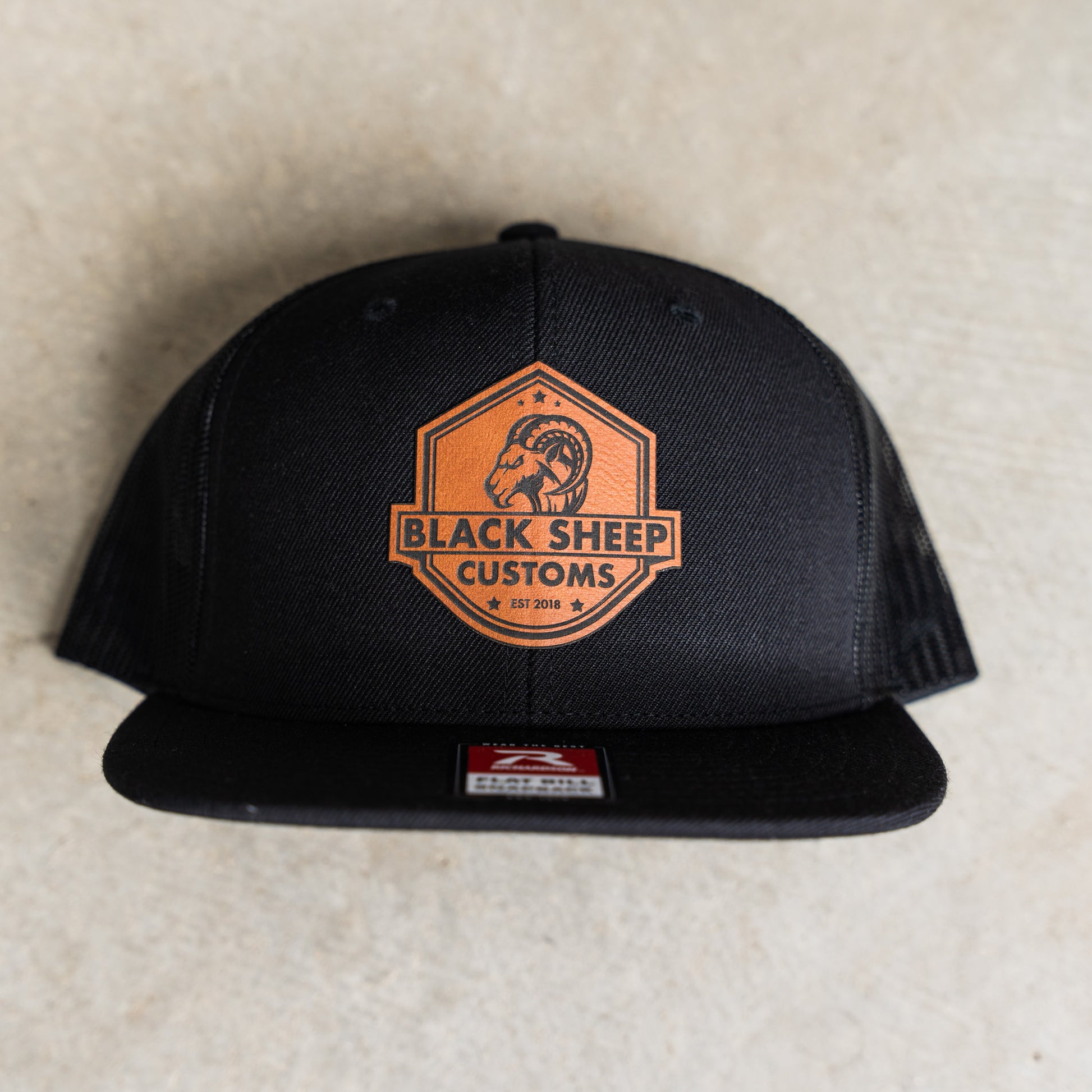 Black Leather Patch Flat Brim Hat